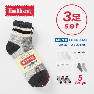 【3足セット】 ソックス 靴下 メンズ 男 クォーターソックス ショートソックス リブソックス 25.0~27.0cm フリーサイズ Healthknit