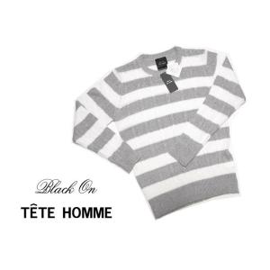 夏のマストアイテム|新品|BLACK ON TETE HOMME(テットオム)|ストライプ柄 麻混サマーニット|サイズ:M