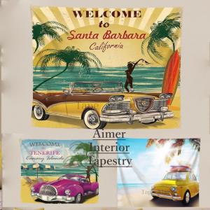 タペストリー おしゃれ 北欧 大判 レトロ 金具付 オープンカー イラスト 生地 布 模様替 G34