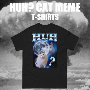 HUH? ネコミーム Tシャツ 大きめサイズ huh猫 猫ミーム ネットミーム ねこ ネコ huhcat はあ? ティーシャツ 半袖 ブラック