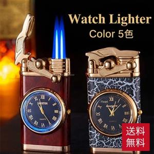 ダブルジェット 時計付きライター メタル製 5色 ガスライター 電子ライター たばこ タバコ 煙草 喫煙具 ライター ウォッチ 時計 おしゃれ 可愛い おもしろ