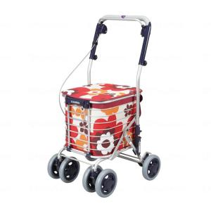 スワレル AS-0275 花柄レッド ショッピングカート ユーバ産業 座面有 シルバーカー 歩行 散歩 買い物 (法人様送り専門店)
