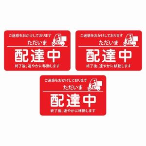 Uber Eats シール ステッカー 各種配達 ただいま 配達中 赤 中サイズ 3枚セット 自転車 バイク 表示 掲示 トラブル回避 塩ビ素材