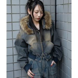 ブルゾン アウター WEGO/「25年秋冬新作」ファーフードデニムショートブルゾン レディース