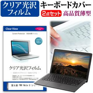富士通 FMV Note U シリーズ [14インチ] キーボードカバー キーボード 極薄 フリーカットタイプ と クリア 光沢 液晶保護フィルム セット 互換品