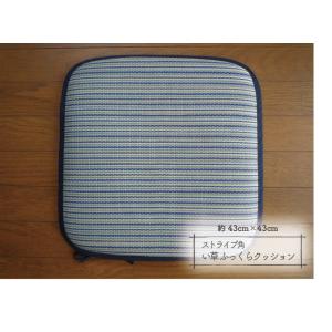 い草ふっくらクッション 座布団 約43cm×43cmストライプ角 ひも付き