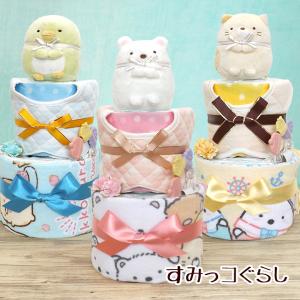 オムツケーキ おむつケーキ すみっコぐらし 出産祝い 2段 ぬいぐるみ スタイ タオル しろくま ぺんぎん? 男の子 女の子 男女兼用