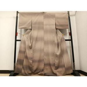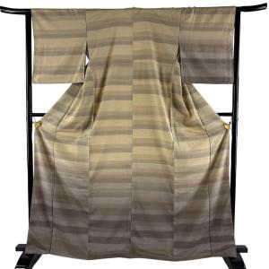 美品 付下げ 身丈166cm 裄丈64cm M 袷 お召地 本塩沢 雪の中のきれ やまだ織 落款あり 証紙あり 横縞 薄茶色 正絹 逸品 中古