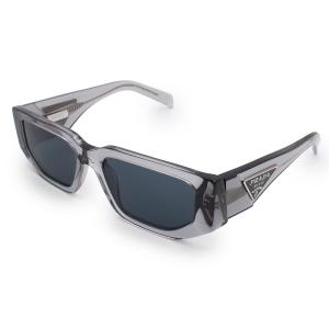 (美品)PRADA プラダ SPR09Z トライアングル 三角ロゴ入り レクタンギュラーシェイプ クリアグレー アイウェア メガネ 眼鏡 サングラス シルバー金具