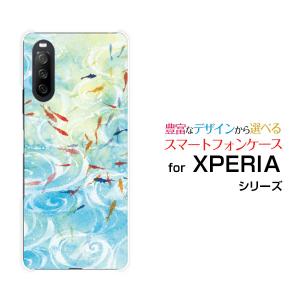 XPERIA 10 III SO-52B SOG04 A101SO スマホ ケース/カバー ガラスフィルム付 和柄・晴れの池泉 F:chocalo デザイン 夏 金魚 イラスト 水色 和柄