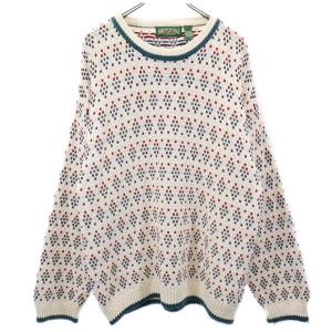 American Eagle アメリカンイーグル 90s リネンブレンド オールド 総柄 長袖 クルーネック ニット セーター XL ホワイト メンズ 古着 中古