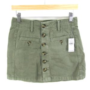 アメリカンイーグル ミニスカート ボトムス 前ボタン 未使用品 レディース US0サイズ グリーン American Eagle