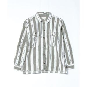「American Eagle」 ストライプ柄長袖シャツ S グリーン レディース