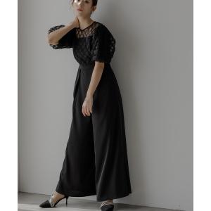 パンツドレス チェックチュールパフスリーブパンツドレス
