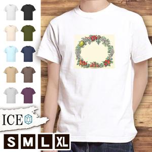 Tシャツ 花 メンズ レディース かわいい 綿100% 草木 アンティーク レトロ リース 大きいサイズ 半袖 xl おもしろ 黒 白 青 ベージュ カー