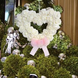 人工花輪ハート型装飾人工花輪白いバラの花の花輪結婚式バレンタインデー玄関ドア