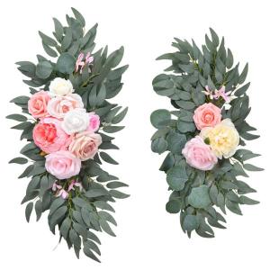 2 ピース ウェディング アーチ フラワー 造花 スワッグ ホリデー レセプション用 ピンク