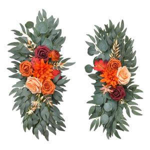 2 ピース ウェディング アーチ フラワー 造花 スワッグ ホリデー レセプション用 オレンジ