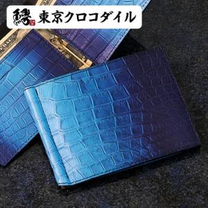 スモール クロコダイル ブルー 日本製 青 マネークリップ 二つ 折り 財布 札ばさみ メンズ ポロサス ブランド キャッシュレス 極薄 ギフト ラッピング 藍染
