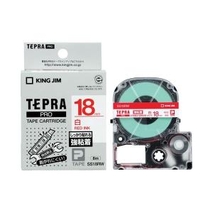 (まとめ)キングジム テプラPROテープ強粘着 白/赤文字 SS18RW〔×5セット〕