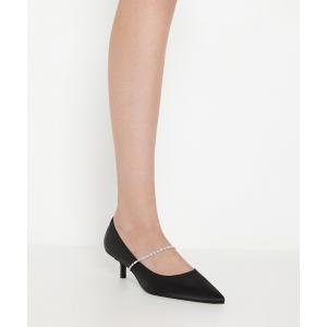 パンプス サテン クリスタルエンベリシュッドキトゥンヒールポインテッドトゥパンプス