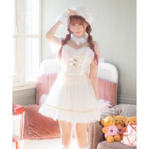 コスプレ サンタコスプレ ケーブルニット ベロア サイドレースアップ ふわふわ ホワイト フレアスカート コスプレ クリスマス コスチューム サンタコ