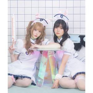 コスプレ コスプレ かわいい アニマル バニー ナース 半袖 パイピング ウエストリボン 体型カバー ワンピース 4点セット