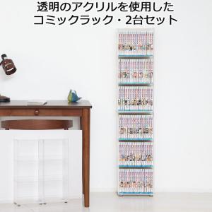 コミックラック 薄型本棚 2個セット アクリル製 透明 積み重ね可能 超軽量 コンパクト 省スペース 完成品