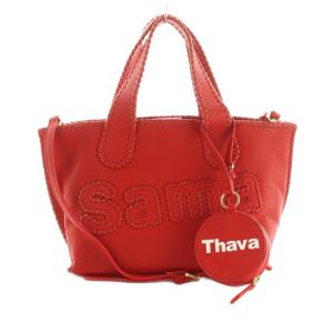 サマンサタバサ Samantha Thavasa 25周年記念 ロゴ ステッチ 2way トートバッグ ショルダーバッグ フェイクレザー 赤 /MI ■OS レディース