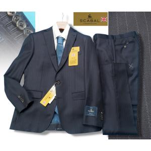 新品サンプル20.6万円 大手百貨店扱い 春秋 日本製『Scabal スキャバル 英国製生地』Super140Sウール ストライプ スーツA5紺(B) 4501581