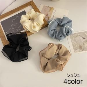 シュシュ ヘアゴム レディース 女性用 ヘアアクセサリー 髪ゴム 髪飾り 髪留め まとめ髪 単色 ブラック ベージュ おしゃれ かわいい きれいめ 上