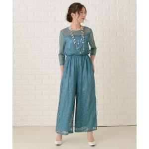 パンツドレス デコルテシースルー切替総レースパンツドレス・オールインワン