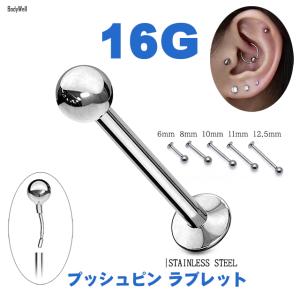 ボディピアス 16G 簡単装着 プッシュピアス 丸玉ボール ラブレットピアス ステンレスピアス 軟骨ピアス