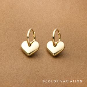 サージカルステンレス ピアス 金属アレルギー つけっぱなしハート ぷっくり ビジュー 揺れる メタル 艶