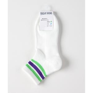靴下 「BASIC SOCKS」ラインリブ クウォーターソックス (吸汗速乾 / 抗菌防臭 / クッション性) メンズ