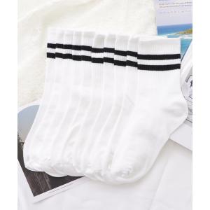 靴下 「10足セット」ショート丈ダブルラインリブソックス レディース