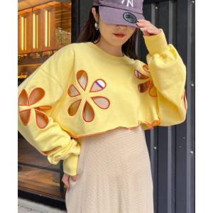 tシャツ 「HELLO.SANFRANCISCO」フラワーカットアウトクロップドスウェット レディース