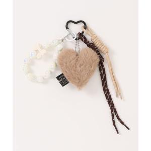 チャーム ファー ハートモチーフ ビーズ リボン コード付き マルチチャーム カラビナ キーホルダー バッグチャーム レディース