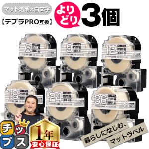 選べる3個 テプラPRO用互換 キングジム対応 マット透明/白文字 サイズ自由選択 3個 互換テープ6mm 9mm 12mm 18mm 24mm 36mm
