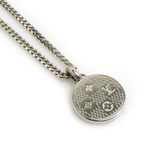 ルイ ヴィトン LOUIS VUITTON ネックレス ペンダント ダミエ ステープル メタル シルバー