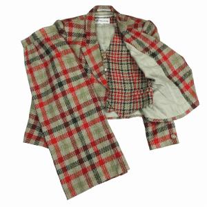 TAKEO NISHIDA タケオニシダ 3ピース スカート スーツ セットアップ チェック柄 シルク ウール サイズ11 レッド レディース 【中古】