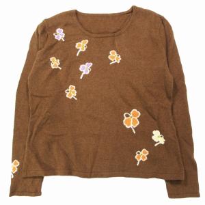 TAKEO NISHIDA タケオニシダ カシミヤ100% ニット セーター フラワーモチーフ 長袖 ブラウン サイズ9号 レディース