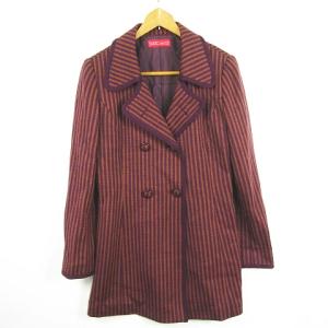 タケオニシダ TAKEO DE 365 ジャケット ミディアム丈 毛 38 パープル ストライプ kz9501 レディース