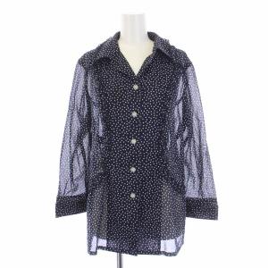 タケオニシダ TAKEO NISHIDA ブラウス シャツ 七分袖 フリル シアー シースルー ドット柄 13 XL 紺 ネイビー /BM レディース