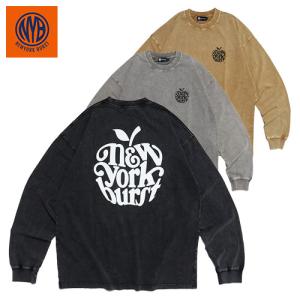 NEW YORK BURST NYB ニューヨークバースト ロンT アップルロゴ リンゴ柄 長袖 ピグメント ブラック/ベージュ/グレー M-XL APPLE PIGMENT L/S T-SHIRT