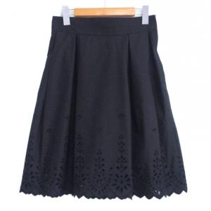 フォクシーニューヨーク FOXEY NEW YORK 美品 ブロッサム スカート 刺繍 カットワーク フレア タック ひざ丈 40 約M 黒 ■MNK4