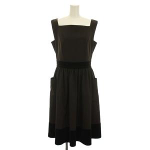フォクシーニューヨーク FOXEY NEW YORK ワンピース ノースリーブ ロング 42 茶色 ダークブラウン スクエアネック ベロア切替 25447