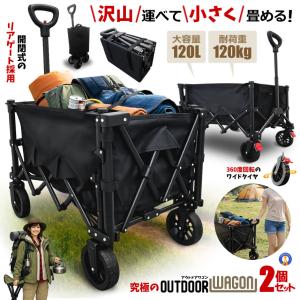2個セットアウトドアワゴン 折りたたみ 後ろ開け キャンプワゴン キャリーワゴン ワゴン車 キャリーカート 長物対応 CAMPCAR