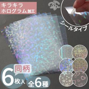 シール ホログラム シート 同柄6枚入 全6種 キラキラ かわいい ■ オーロラ ホロ シールシート クリア ハート 星 ステッカー 推し活 デコ ■