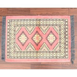 アフガニスタン絨毯 ウール100% 手織り絨毯 玄関マット 65×92 cm ローズ ダブルノット